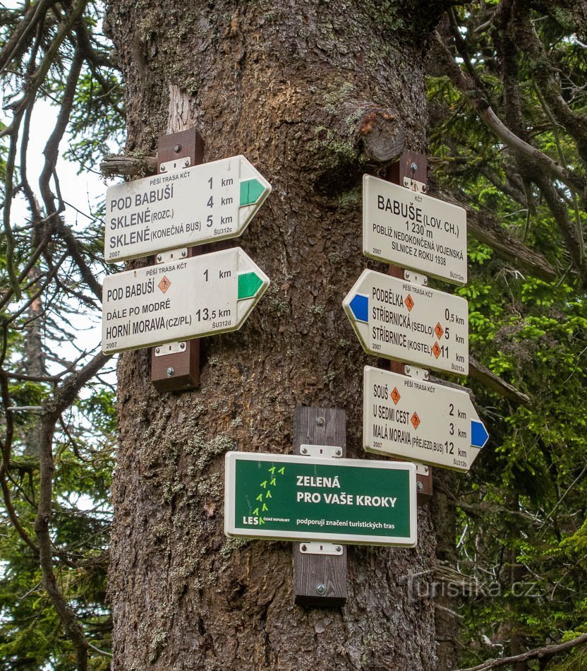 Babuše, chata, rozcestí, kopec i prameniště