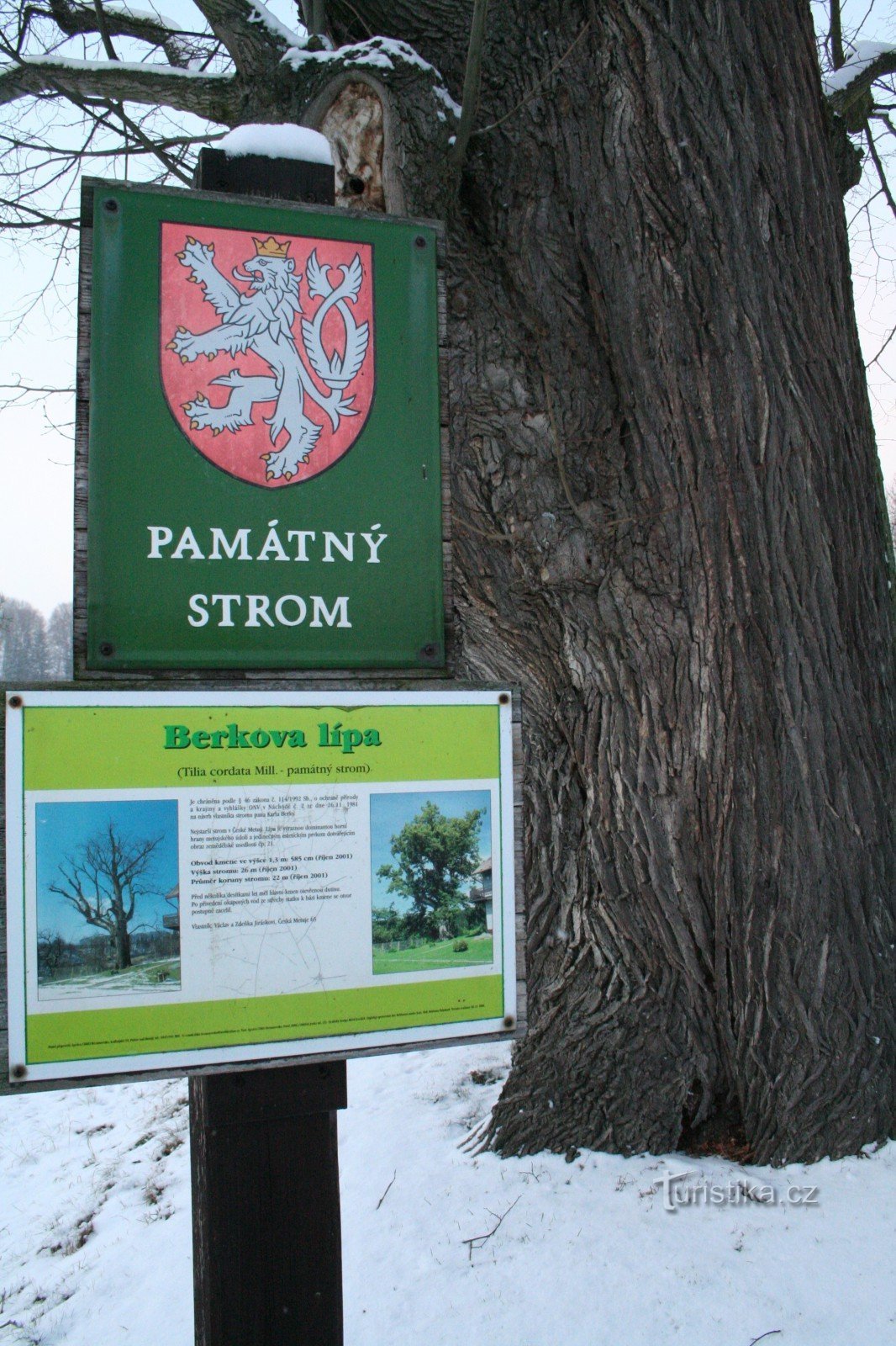 Tento památný strom roste v České Metuji. Sice je na soukromém pozemku u domu č. p. 21, ale dá se dostat až k němu, protože pozemek není oplocený. My jsme k němu šli shora, tedy od východu, což je asi jediná přístupová cesta. Za památný strom byla tato lípa velkolistá vyhlášena 26. 11. 1981 Okresním národním výborem Náchod. Důvod není ve vyhlášce uveden. Tento památný strom má stanovené ochranné…