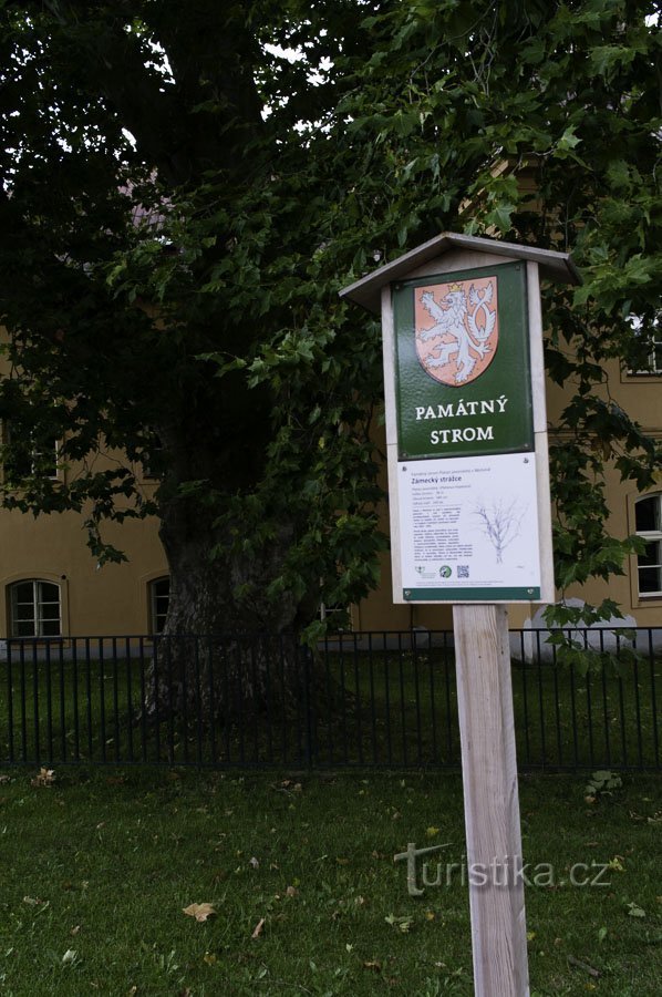 Hrdý název stromu odpovídá jeho poloze před místním zámkem. Udávaná výška přes 38 m, obvod kmene 584 cm (2009), koruna samotná má výšku 34,5m šířku 29 m. Na stromu byl provedeno několik zdravotních řezů, protože při měření z roku 2003 se udávala výška stromu až 46 m, šířka koruny 38 m.