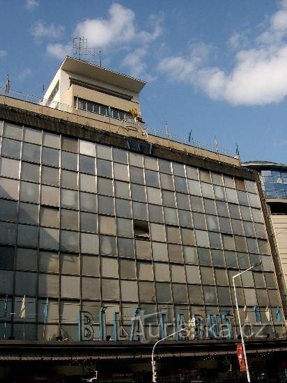 Kdysi zde stával jednopatrový dům se zájezdním hostincem, kterému se říkávalo "U Podušků". Neboť se na domě časem objevilo znamení bílé labutě, tak byl hostinec znám i pod jménem "U Bílé labutě". Okolo hostince vedla stará a frekventovaná kupecká cesta. Za domem byla zahrada, ve které byl později postaven dřevěný hudební pavilon. Na dvoře stály kolny a stáje pro formanské koně. Později zde vznikl…