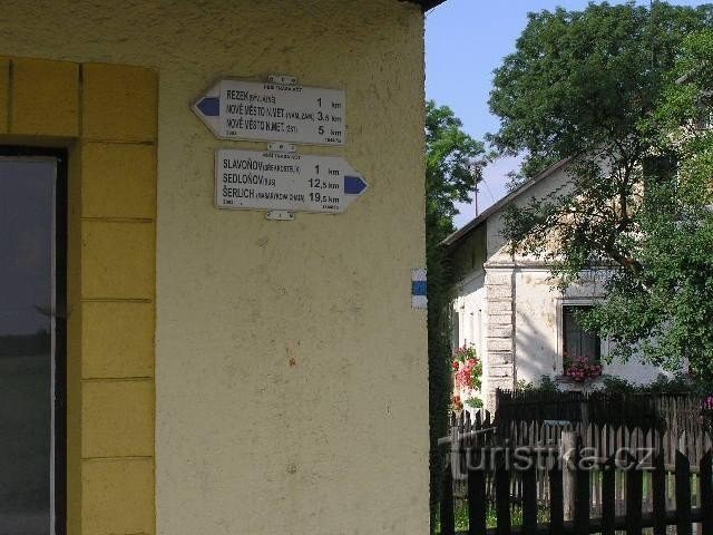 Osada Blažkov se nalézá na modré tur. značce východně od Nového Města nad Metují.