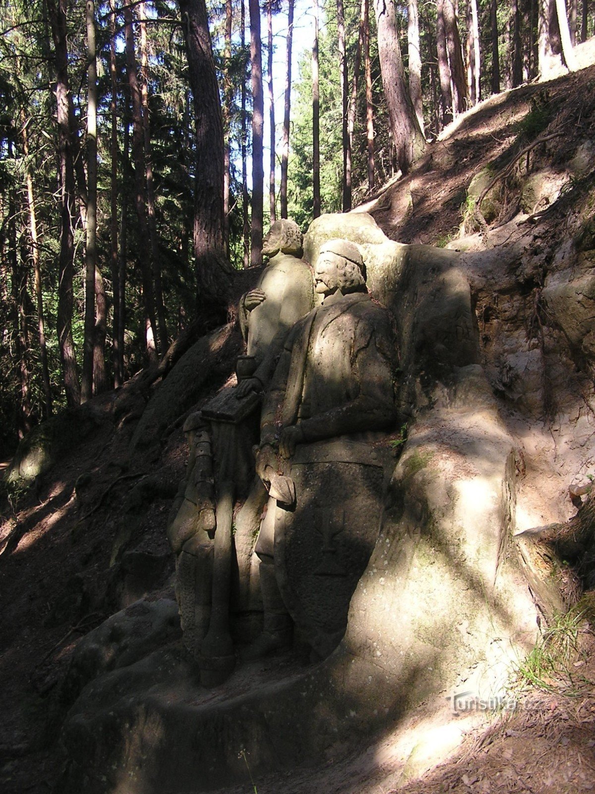Sousoší husitských osobností v nadživotní velikosti je vytesané v pískovcové skalce na Velkém Chlumu u Bořitova.