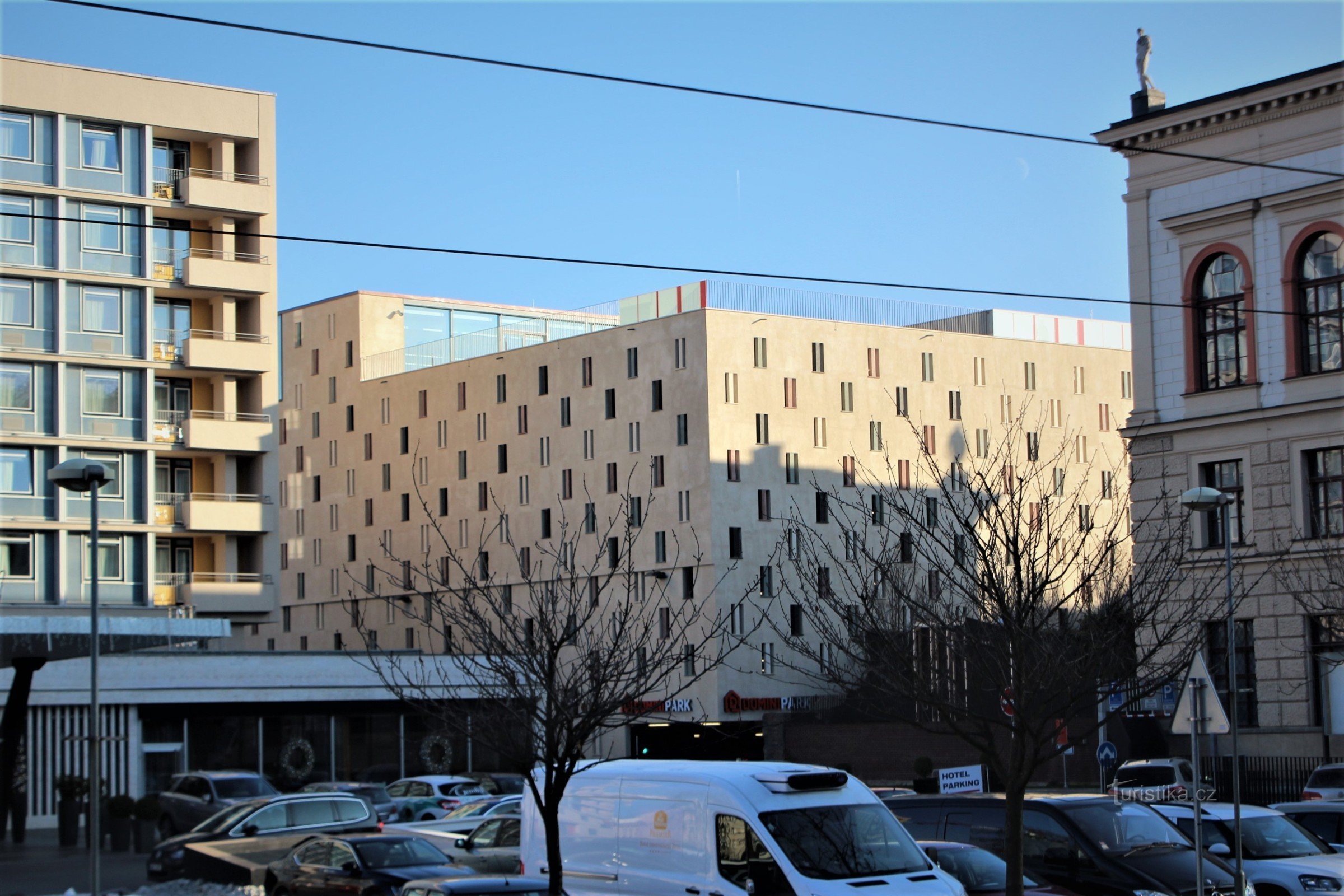 V Brně přibyl další parkovací dům. Nachází se v centru města na ulici Panenské. Příjezd je z ulice Husovy. Jeho stavba započala říjnu 2014 na místě bývalého parčíku podle projektu Atelieru Hrůša a spol, Atelier Brno. Zhotovitelem byly firmy IMOS Brno a.s. a Metrostav a.s. Parkovací dům se řidičům slavnostně otevřel 26. října 2016. Vzhledem k těsné blízkosti Dominikánského náměstí nese jméno…