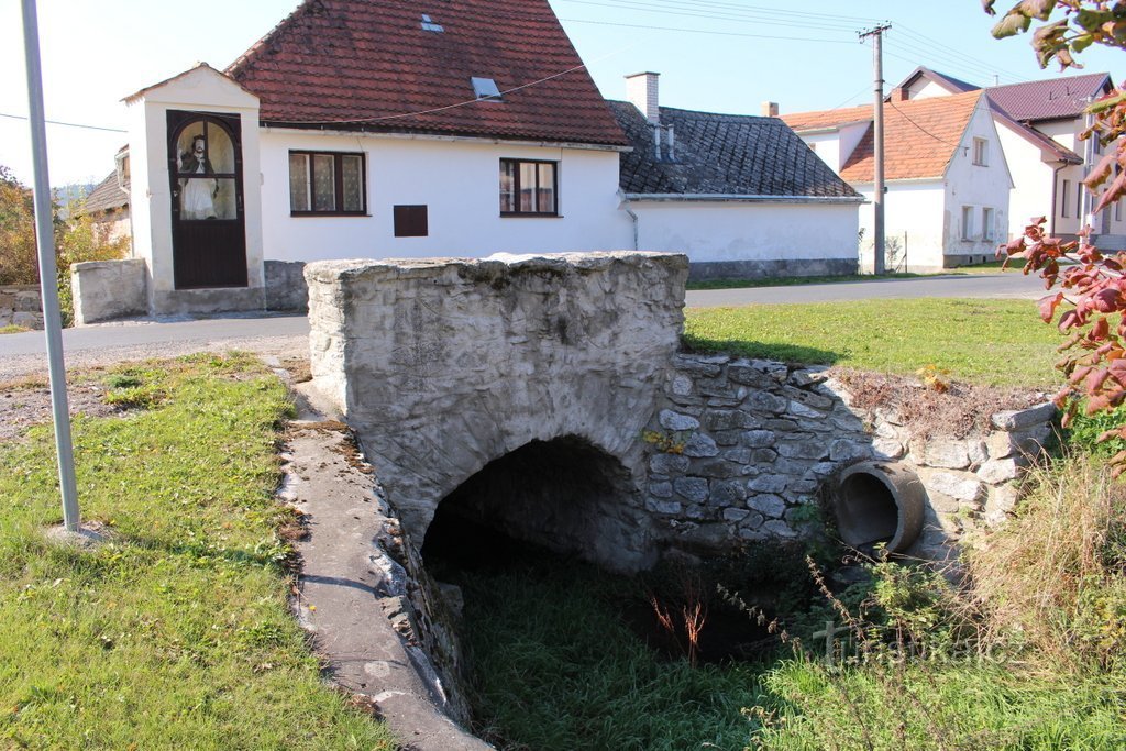 První písemná zmínka o této vsi je již z roku 1240. Z tohoto období tady stojí pouze kostel sv. Petra a Pavla a na nedalekém vrchu Džbán nepatrné zbytky hradu. Ale mají tady i další velmi zajímavé památky, mezi které jistě patří starý most a kaplička sv. Jana z Nepomuku. Ze kterého století je kamenný můstek, lze jen hrubě odhadnout. Jistotou je, že tady stál dávno před postavením kaple. Ta je…