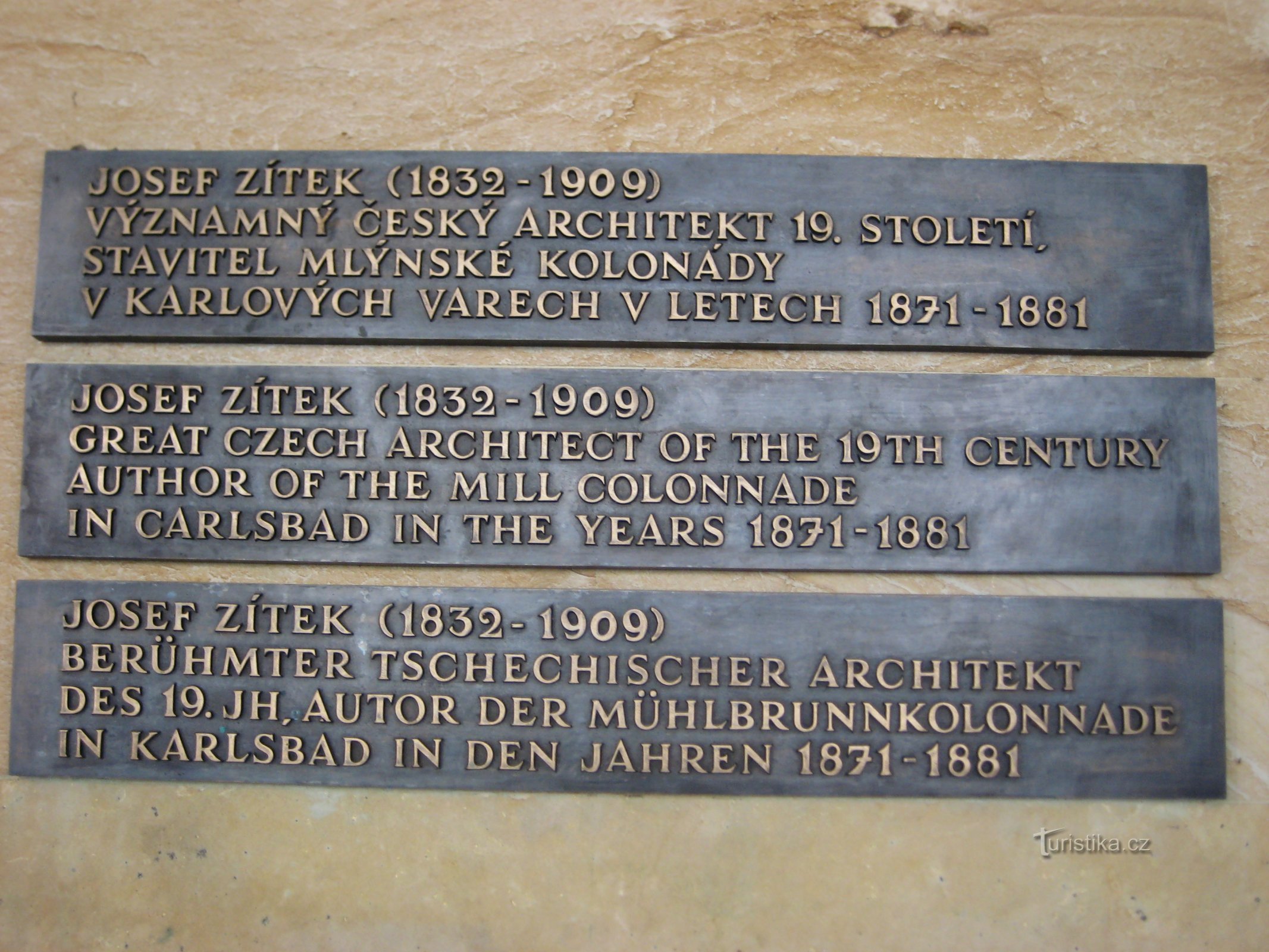 V podloubí kolonády má Josef Zítek svoji bystu jako významný český architekt 19. století a samotný stavitel Mlýnské kolonády v Karlových Varech .