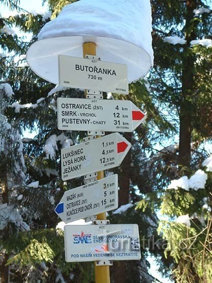 Rozcestí Butořanka najdeme východním směrem od obce Ostravice a na východním úbočí vrcholku Smrčina ( 810 m.n.m.). Toto rozcestí se nachází na lesní cestě 4,5 kilometry od Lysé hory ( 1323 m.n.m.). Rozcestím prochází červená turistická značka a z osady Mazák vede k tomuto rozcestí modrá značka. Výchozím bodem červená značky je železniční stanice v Ostravici a přes rozcestí Butořanka dále…