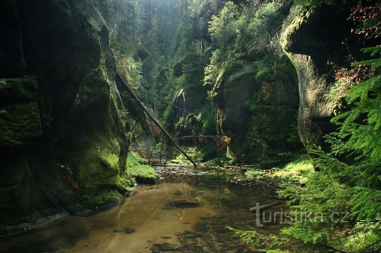 Pár metrů od státní hranice s Německem,kterou tvoří v těchto místech Křinice protékající kaňonem pískovcových skal,se nachází Černá brána.