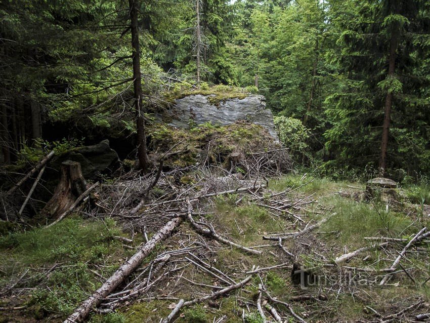 Dlouhý den a blízkost hor láká k průzkum neznámých končin. Protože jsem v sobotu potkal známého a ten se mi zmínil o zajímavém místě. Po práci tedy sednu na kolo, je to celkem výhoda, že na hory to nemám tak daleko, musím ovšem překonat poměrně brutální stoupání přes Krásné do Hraběšic a na Traťovku to ještě celkem ujde, ale od Traťovky k Hvězdě a pak ještě pod Bílé kameny to je přece jen…