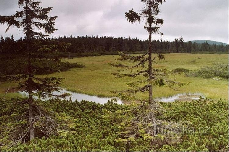 Krkonošské rašeliniště, které se nachází se v horské proláklině asi 1 km severně od vrcholu Černé hory. Jeho vznik datují odborníci do doby před přibližně 6000 lety. Na okraji rašeliništní louky s rozlohou cca 2,5 ha stojí vyhlídková věž. Okolo rašeliniště vede Naučná stezka.