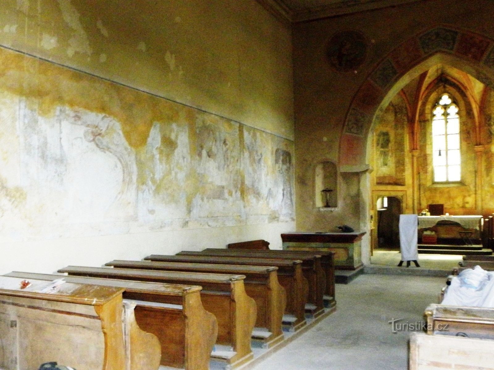 Kostel původně románský, z pol. 12. stol., přestavěný v r. 1764 a 1905-10. Roku 1901 byly objeveny gotické nástěnné malby. Z původně románské stavby jsou patrná jen dvě polokruhová sklenutá okna. Presbytář má gotickou klenbu a okna s kružbami. Náhrobní desky ze 14. a 16. stol.