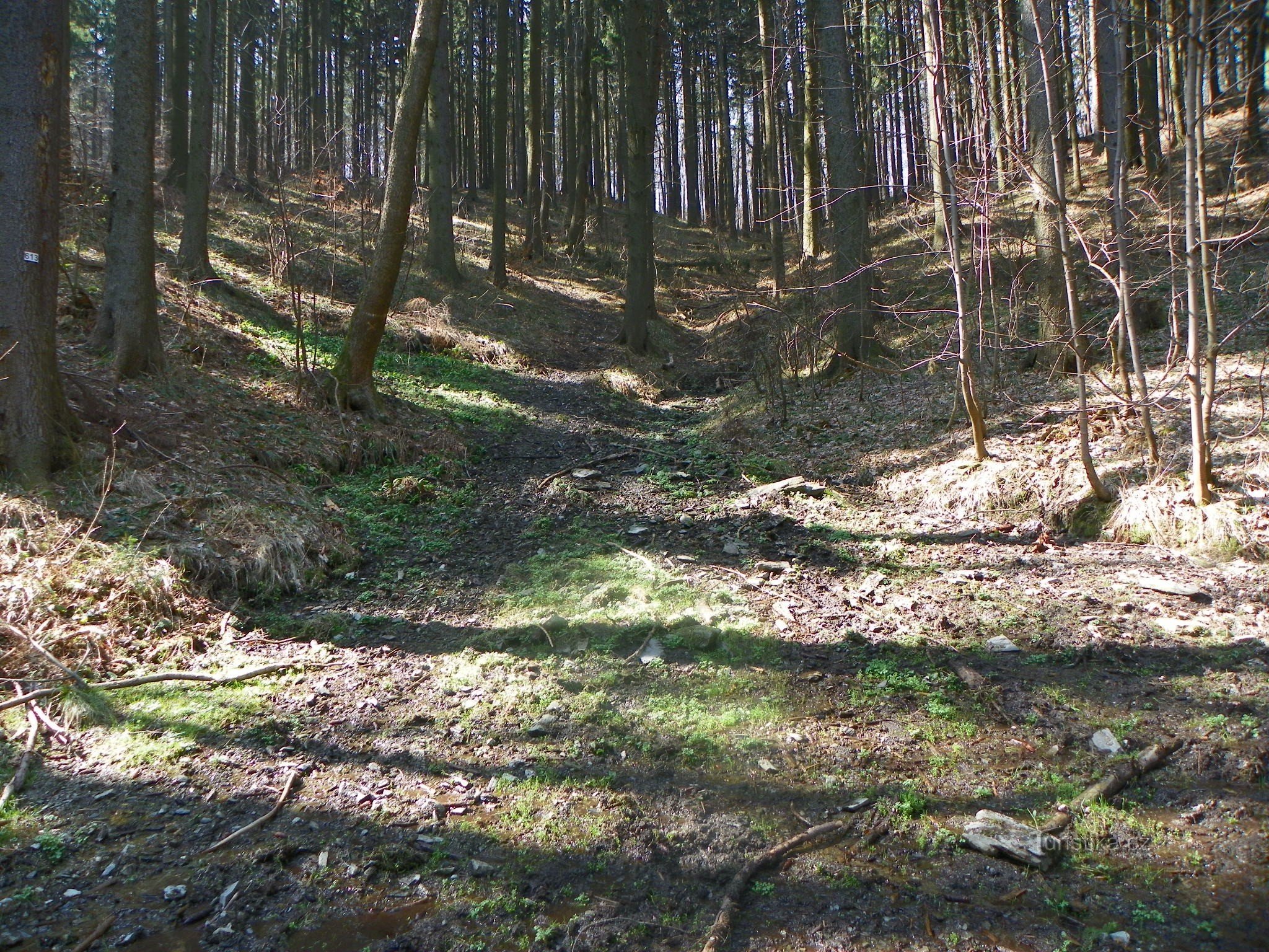 Nejlepší je sem jít na jaře, když cesty nejsou ještě zarostlé. Ale byly zase pro změnu rozbahněné. Museli jsme skákat po kamenech, po kládách. Odměnou nám byly krásné skály, které úzké údolí lemují.