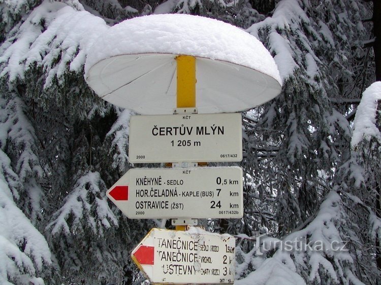 Čertův mlýn je zalesněný vrchol kopce zvedající se jižním směrem od obce Čeladná. Podle pověsti měl čert u dlouhého žlabu na úbočí kopce postavit mlýn a tak vrchol dostal název Čertův mlýn. Kolem vrcholku bylo vyznačeno chráněné území a to národní přírodní rezervace Kněhyně-Čertův mlýn. Jižně od vrcholového bodu Čertova mlýna je zajímavý přírodní úkaz, můžeme tu vidět rozjíždění bloku pískovce.…