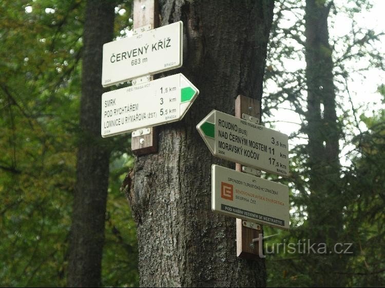 Červený kříž je rozcestí a orientační místo na zelené turistické trase a nachází se jihozápadním směrem od obce Roudno. Rozcestník je umístěn na stromě v místech kde značená turistická trasa vedoucí z obce Roudno opouští silnici spojující Roudno a obec Valteřice a dále pokračuje po lesní cestě přes rozcestí Pod Rychtářem do obce Lomnice. V blízkosti rozcestí stojí červeně natřený dřevěný kříž. V…