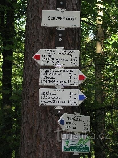 Červený most je Rozcestí turistických tras vedoucích Babiččiným údolím a jak název napovídá nachází se nedaleko Červeného mostu, který je technickou památkou.