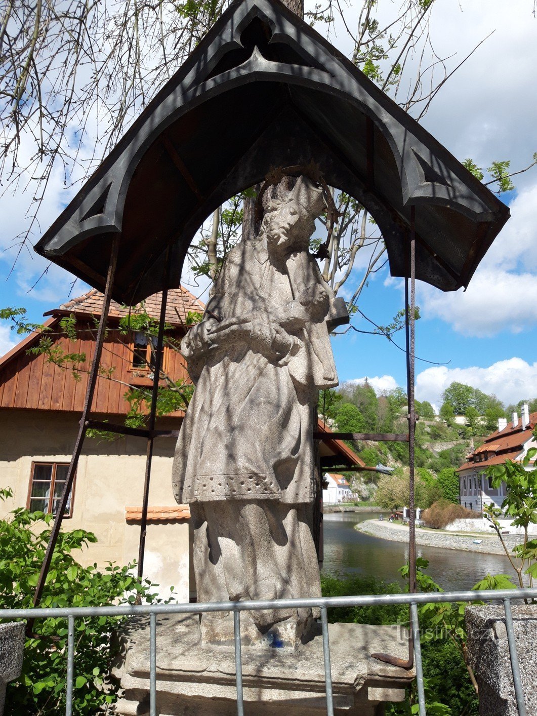 Český Krumlov a Jan Nepomucký na mostě Dr. E. Beneše