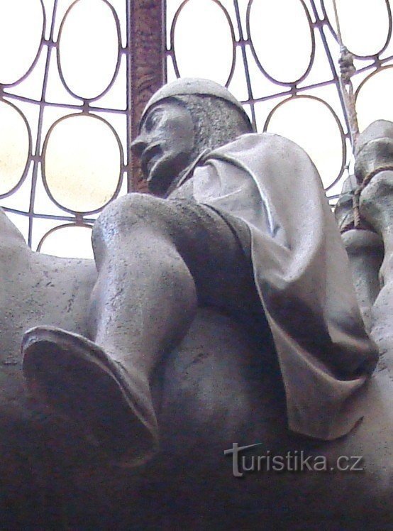 Kontroverzní díla českého umělce Davida Černého (*1976) zná u nás asi každý. Jedno z jeho děl vzniklé v roce 1999 můžeme spatřit v pasáži paláce Lucerna poblíž vchodu z Vodičkovy ulice. Polohu paláce Lucerna nemusím asi podrobně popisovat. Nachází se přibližně uprostřed Václavského náměstí vpravo při pohledu od Můstku. Do jeho pasáží se dá vejít i z Vodičkovy a Štěpánské ulice.
