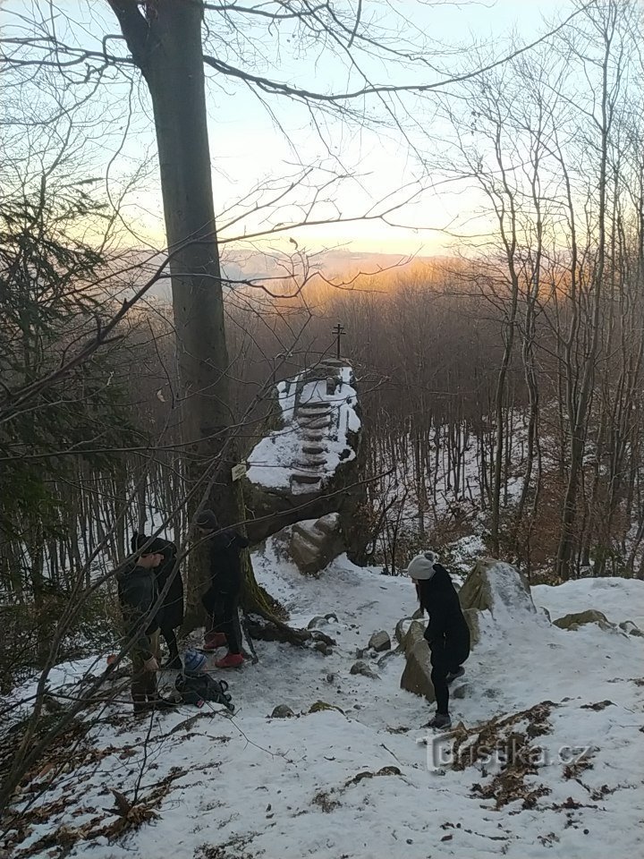 Skalní útvar zřejmě z doby ledové... schůdky vytesané ve středověku.. Kazatelna je vysoká 8 metrů a byla v roce 1972 doplněna dvouramenným křížem, udájně zde kázal i svatý Metoděj a později i jiní...