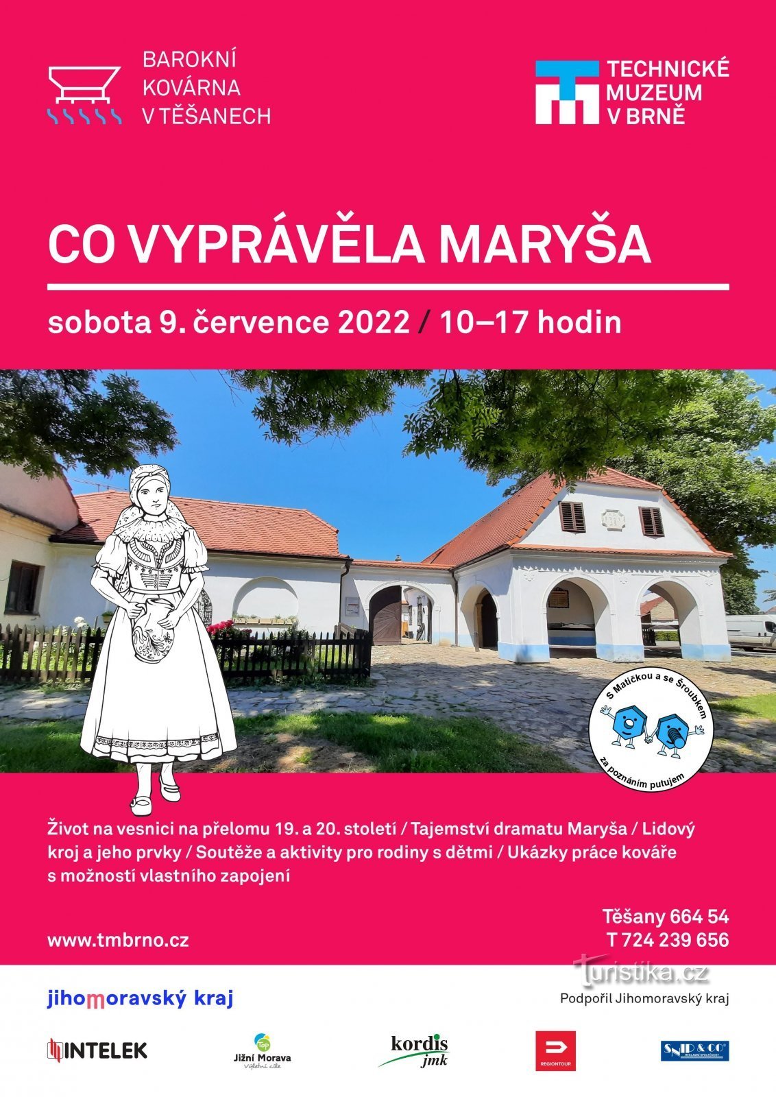 Šroubek a Matička zvou tentokrát rodiny s dětmi 9. 7. 2022 od 10.00 do 17.00 do Těšan na jednu z mimobrněnských památek Technického muzea v Brně – Barokní kovárnu v Těšanech na akci Co vyprávěla Maryša.Obec Těšany na Brněnsku je totiž známá nejen historickou kovárnou ve správě Technického muzea v Brně, ale také jako dějiště slavného dramatu Maryša bratří Mrštíků. Říká se, že Alois Mrštík se sem…