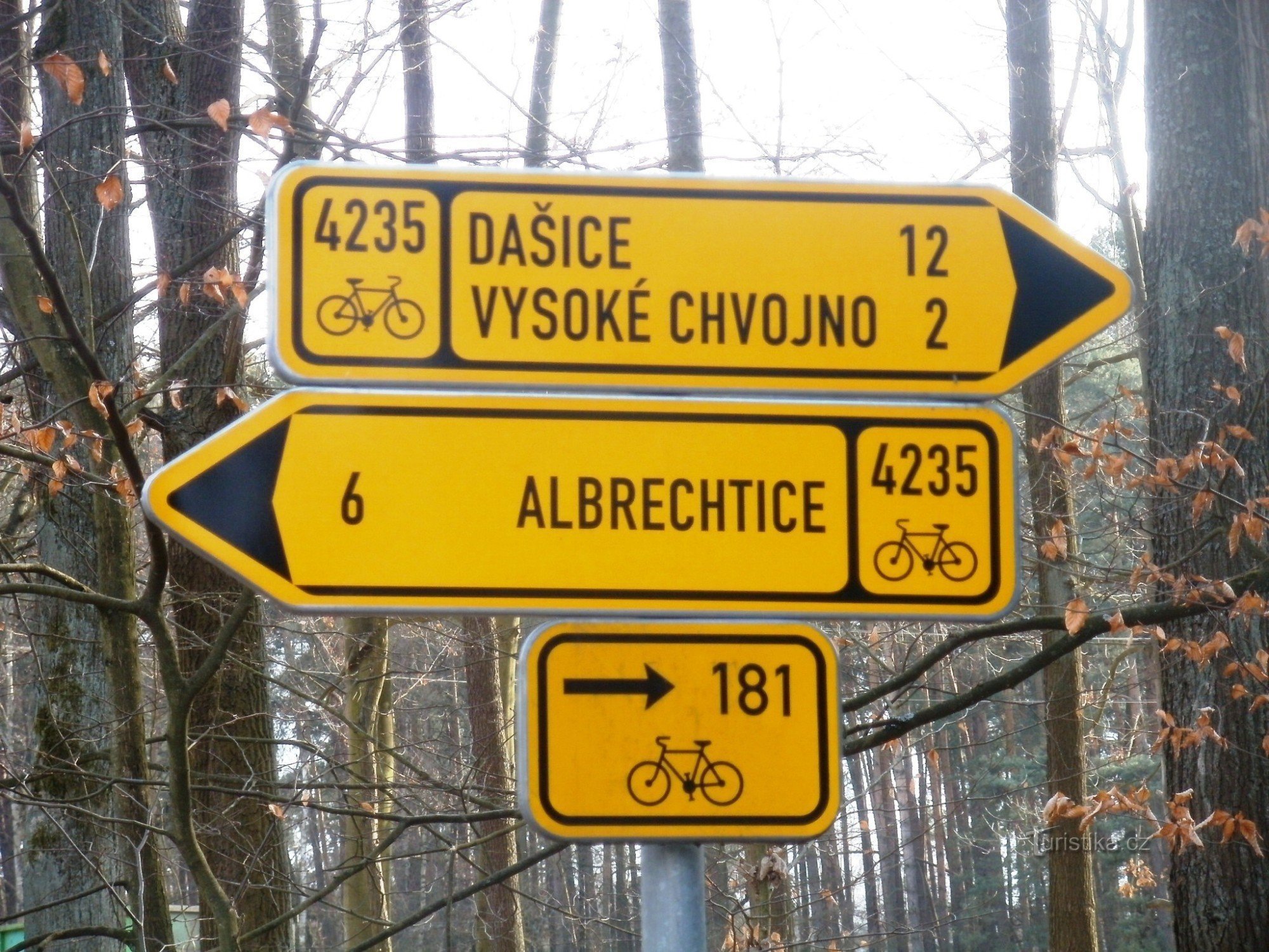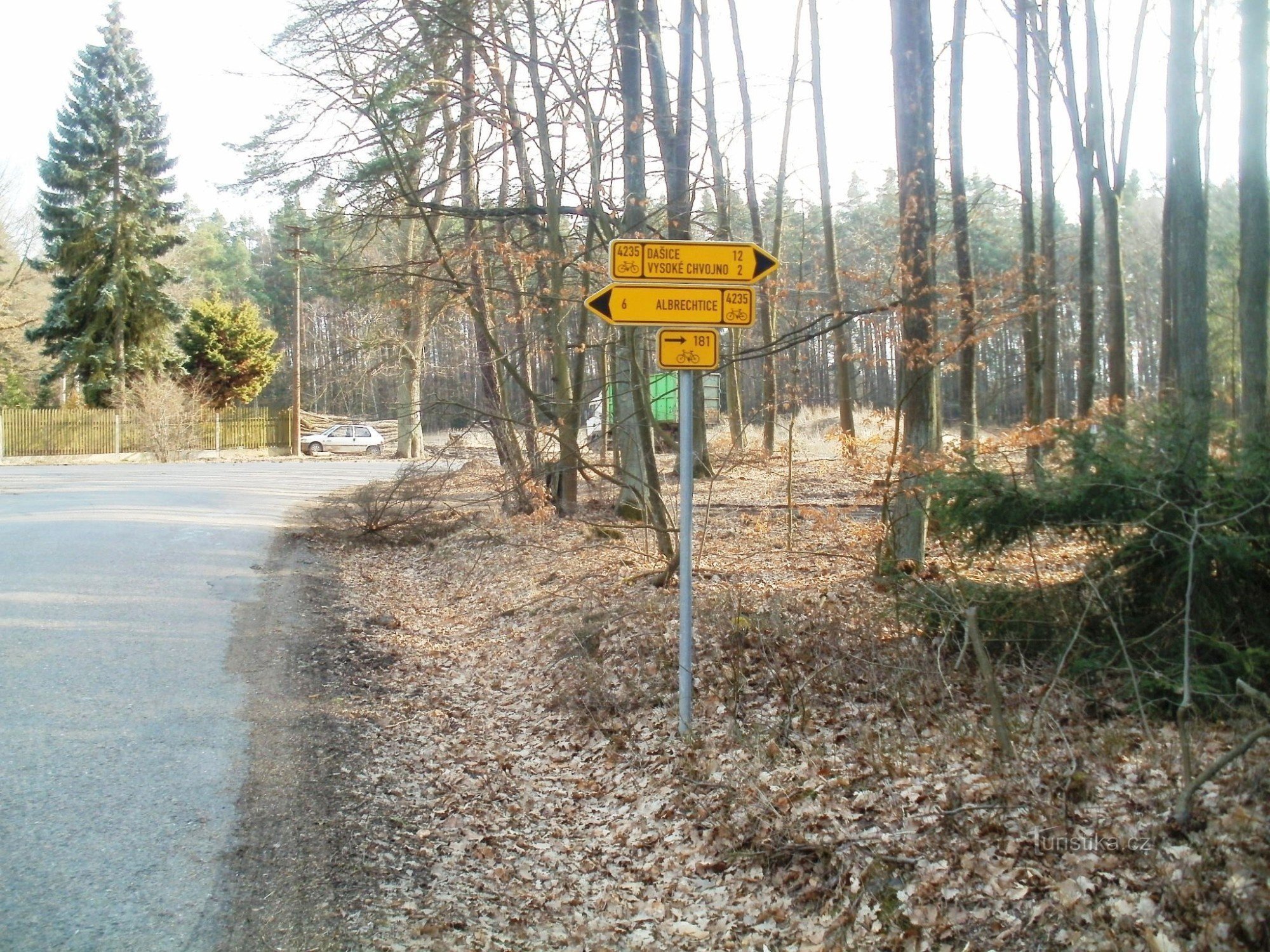 cykloturistické rozcestí - hájovna u Vysokého Chvojna