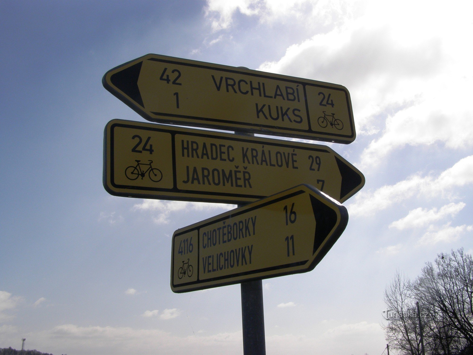 Cykloturistické rozcestí, které se nachází za Hospitalem Kuks ukazuje cyklistům cestu do dvou směrů. Po trase KČT č. 24 - zvané Labská trasa a po trase KČT č. 4116 ve směru Kuks - Velichovky, Chotěborky.