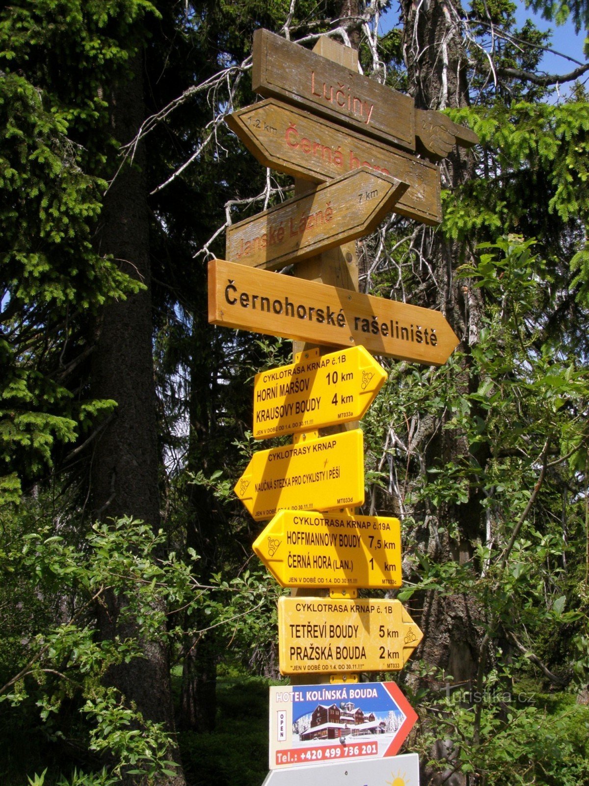 Cykloturistický rozcestník, který se nachází mezi hotelem Černá Bouda a oblastí Václaváku, ukazuje cyklistům směr po 3 cyklotrasách vyznačených Krnapem. Po trase 1B ve směru Horní Maršov, Krausovy Boudy - Pražská bouda, Tetřeví Boudy, po trase 19C ve směru k Černé Hoře a Hoffmannovým boudám. Samostatně je značena Naučná stezka pro cyklisty i pěší. Trasy pro cyklisty jsou však sjízdné v období 1.4…