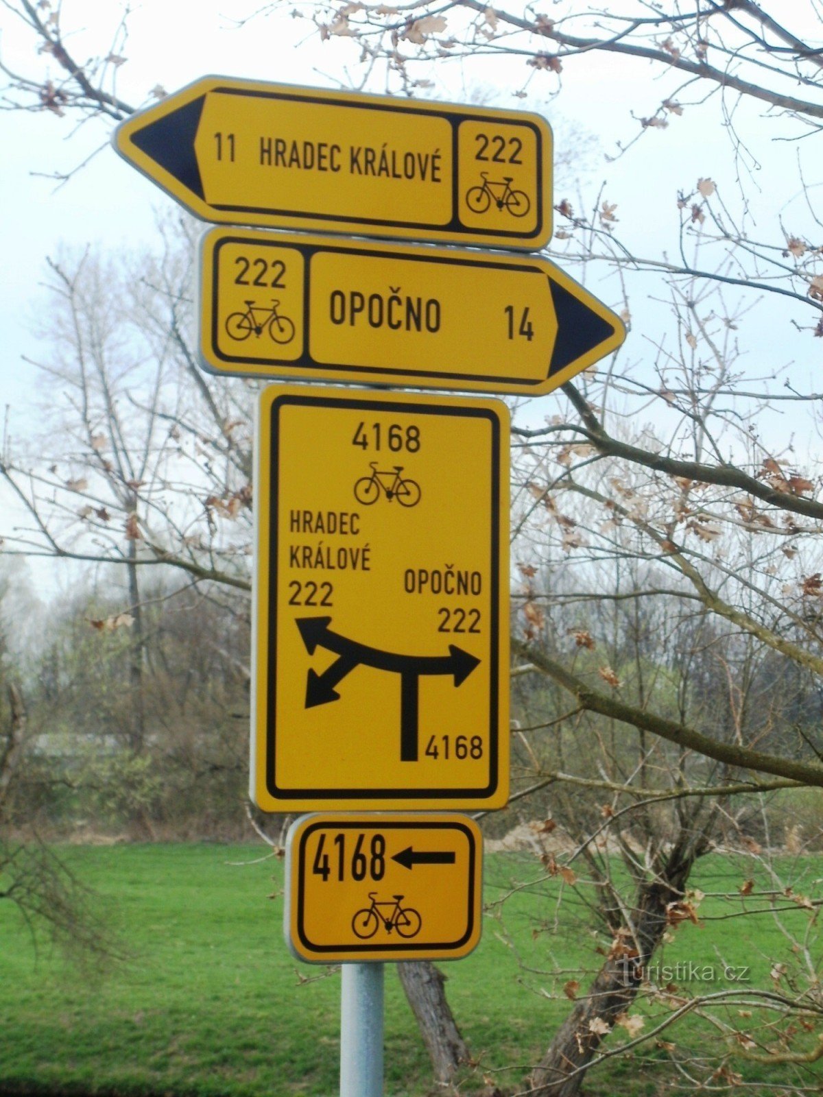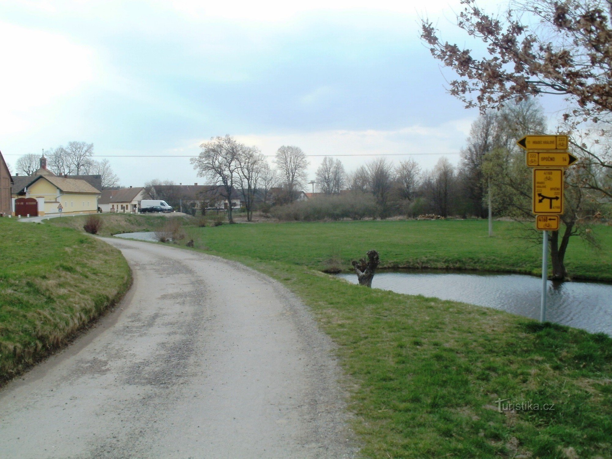 Cykloturistický rozcestník, který se nachází v blízkosti skanzenu v Krňovicích, ukazuje cyklistům cestu do dvou směrů. Po trase KČT č. 222 ve směru Hradec Králové - Opočno a po trase č. 4168 ve směru Marokánka - Třebechovice pod Orebem.