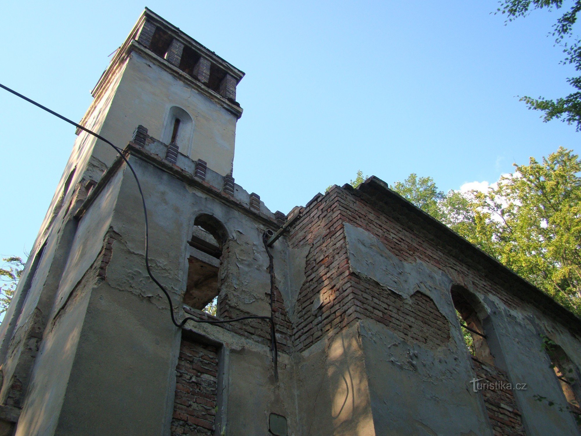 Kostel v žalostném stavu se nachází na skalnaté vyvýšenině na sever od kulturního domu Střelnice. Postaven byl, původně jako starokatolický, roku 1934. V roce 1945 náležel církvi Československé husitské a od roku 1950 pravoslavné. Roku 1989 kostel vyhořel a od té doby neopraven dál chátrá.