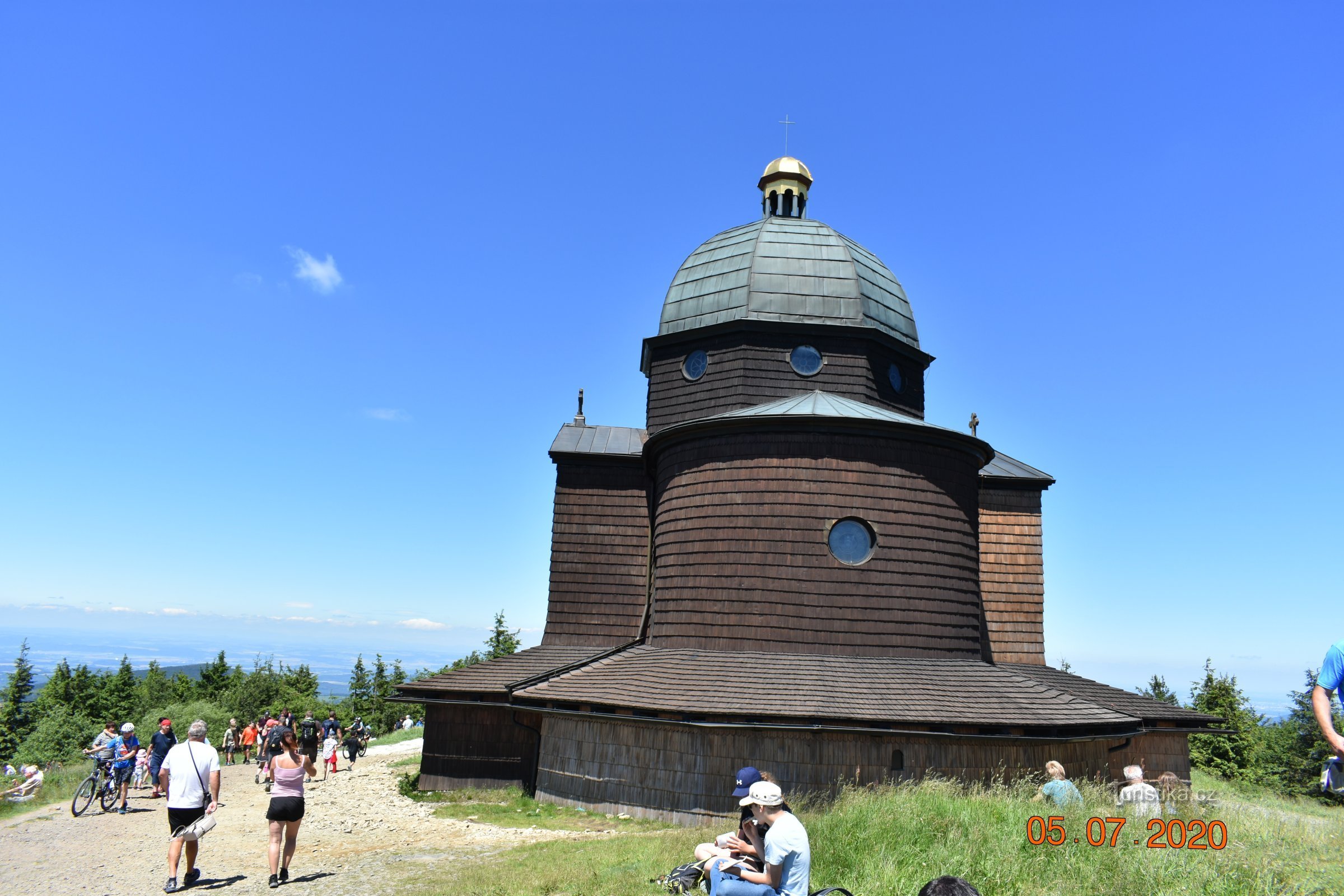 Den slovanských věrozvěstů Cyrila a Metoděje na kapli na Radhošti 5.7.2020 Kaple svatého Cyrila a Metoděje je nejvýše položená církevní stavba v Česku. Vysvěcená byla roku 1898. Tehdy však samozřejmě vypadala trochu jinak, ovšem byzantskou kupolí a vzhled si ponechala i do dnešních časů. V kapli je sousoší věrozvěstů od Poláška. Dřevěná zvonice byla přistavěna až ve 20. letech 20.…