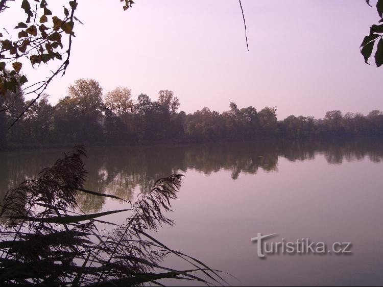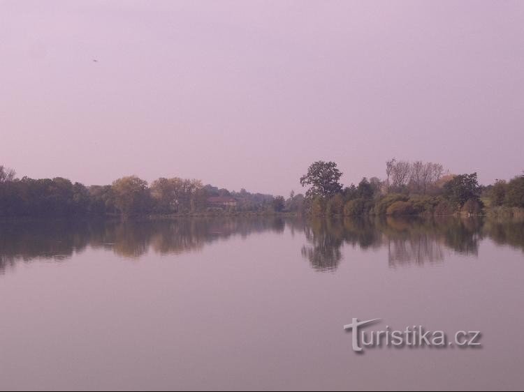 Rybník uprostřed soustavy rybníků mezi Polomí a Heřmanicemi.