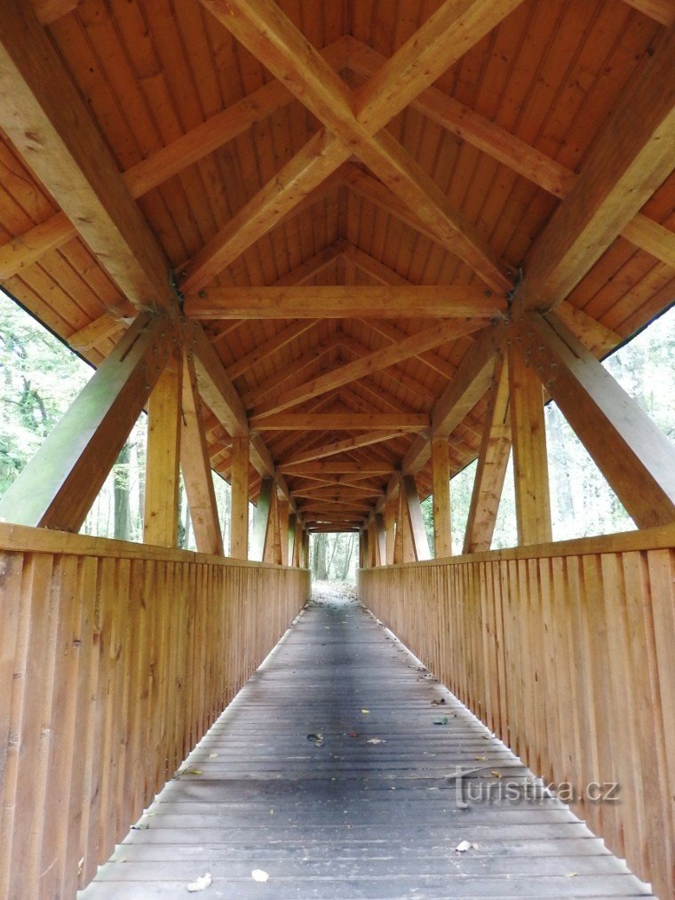 Dřevěná krytá lávka v Pekle