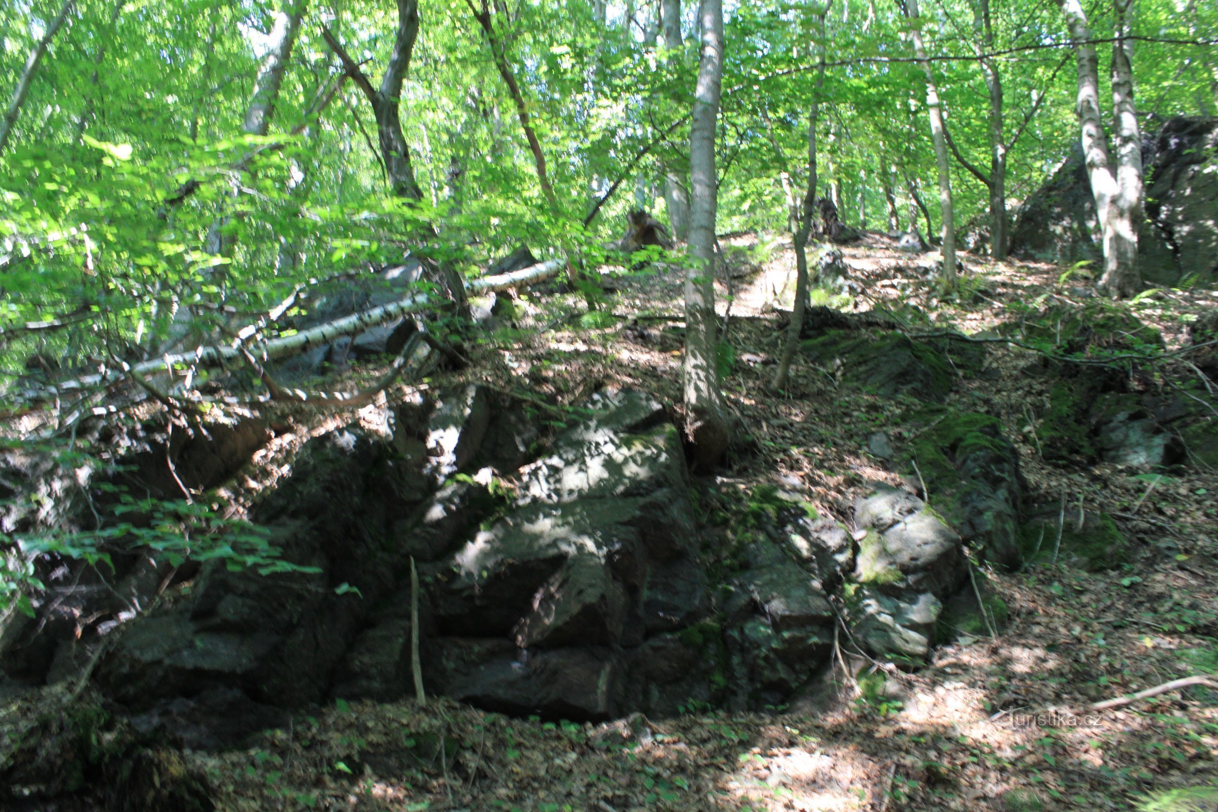 Podél celé tektonické linie táhnoucí se napříč celým údolím Unčínského potoka vystupuje řada skalních výchozů názývaných Drobečci. Zde, v těchto místech se nachází Drobeček č.8, skalní výchoz, u paty široký asi 5m, vysoký 3m a dlouhý také 3m. Po jeho levé straně se nachází maličký výchoz 3m široký a 1,5m vysoký. Na pravo od něj leží další z menších výchozů široký 2x2m a vysoký rovněž přibližně 1…