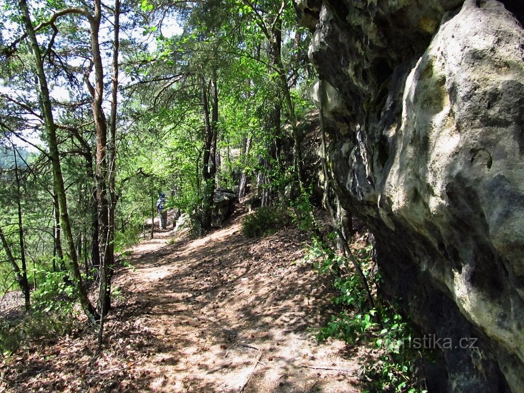 Vracíme se k rozcestí Velká Řebčice a pokračujeme po červené k Martinské stěně. Asi po 3km lesní cestou bohudík ve stínu stromů se odpojuje cyklo 0058 a po chvíli přicházíme ke strmé Martinské stěně, prudce spadající do Komářího dolu. Přecházíme po úzké ochozové pěšince a sluníčko pálí jako by pec otevřel. Ze srázu se plazí suché,…