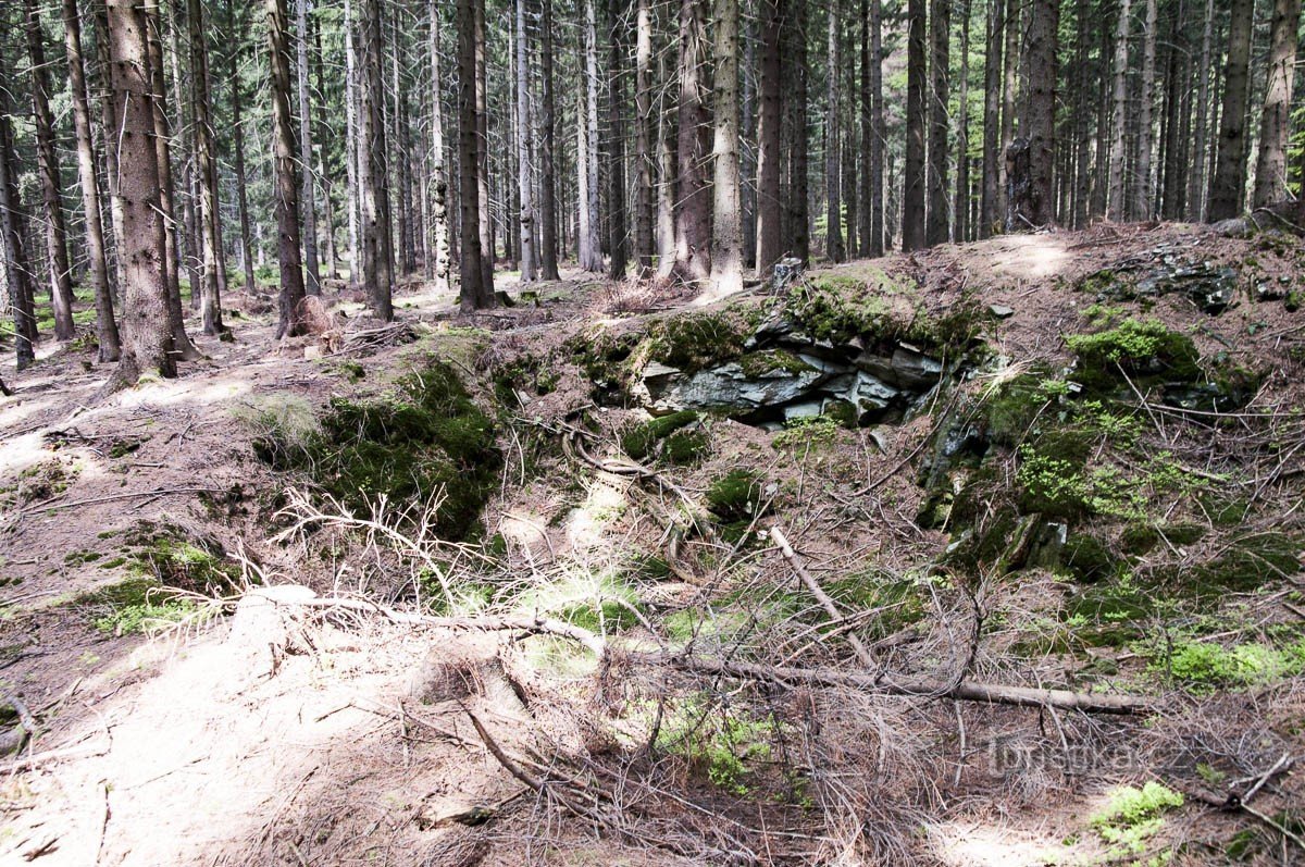 Severozápadním směrem od horního konce Nové vsi, části Dolní Moravice na Rýmařovsku najdeme pozůstatky rozsáhlé důlní těžby. Na svazích hory Soukenné najdeme pozůstatky, které patří k důlnímu revíru nazvaného Boží Dar. Ten má svůj začátek již v údolí Stříbrného potoka pod Alfrédkou, kde byla ještě v poválečných letech vyražena štola Josef a ještě do roku 1959 bylo ložisko těženo.