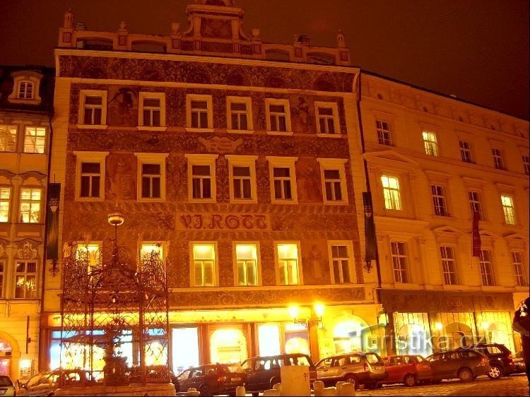 Proti podloubí na malém půvabném náměstí, kdysi zvaném Malý ryneček, najdeme novorenesanční budovu bývalého železářství U Rotta. Relativně mladý dům má dlouhou historii. první kamenný románský dům na tomto místě byl postaven ve třináctém století a nejstarší písemná zmínka o něm je z roku 1401. Říkalo se zde i U Volka, U Tří bílých růží, U Tří snopů, Pytlíkovský dům aj. Roku 1488 zde byla nákladem…