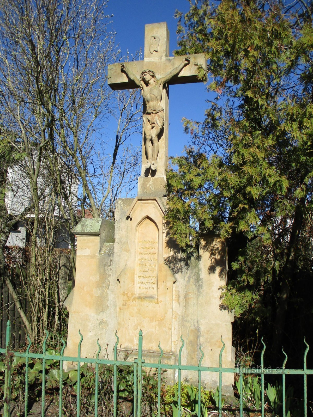 Když vjedeme z malšovického nadjezdu do Úprkovy ulice, uvidíme na rohu, kde se stýká s ulicí Zámostí, kamenný kříž s nápisem „Ponížilť sebe samého učiněn jsa poslušným až k smrti, a to k smrti kříže. Filip 2,8. Postaveno léta Páně 18-23/5-91“, který byl vysvěcen 21. června 1891 (některé prameny uvádějí též 13. června 1891). Tehdy to byla velká sláva. V předvečer svátku 20. června procházela hudba…