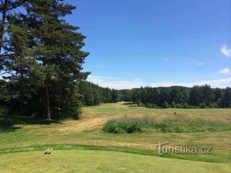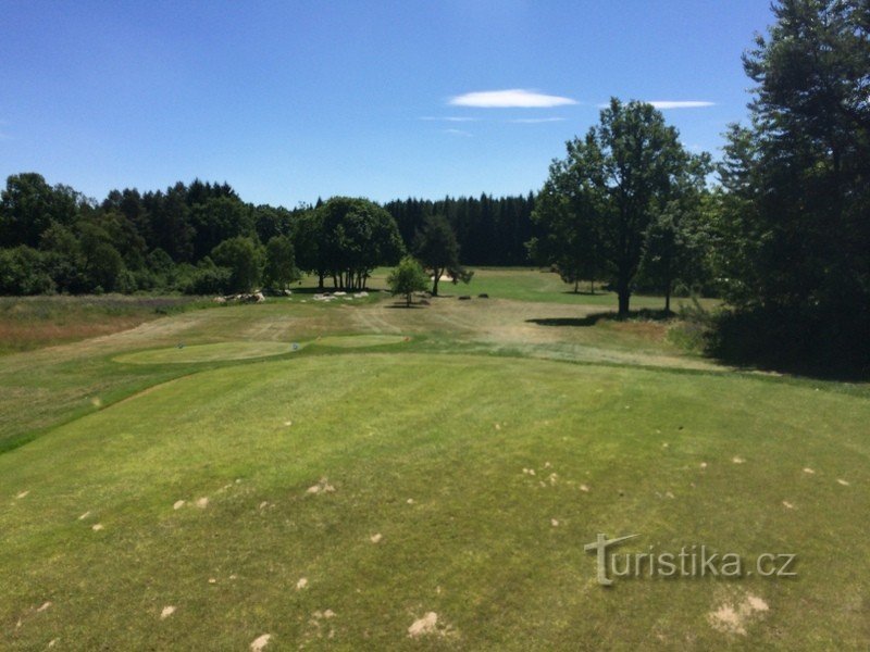 Nádherné 18 ti jamkové hřiště v malebné krajině se vzrostlými stromy a několika krásnými rybníky.