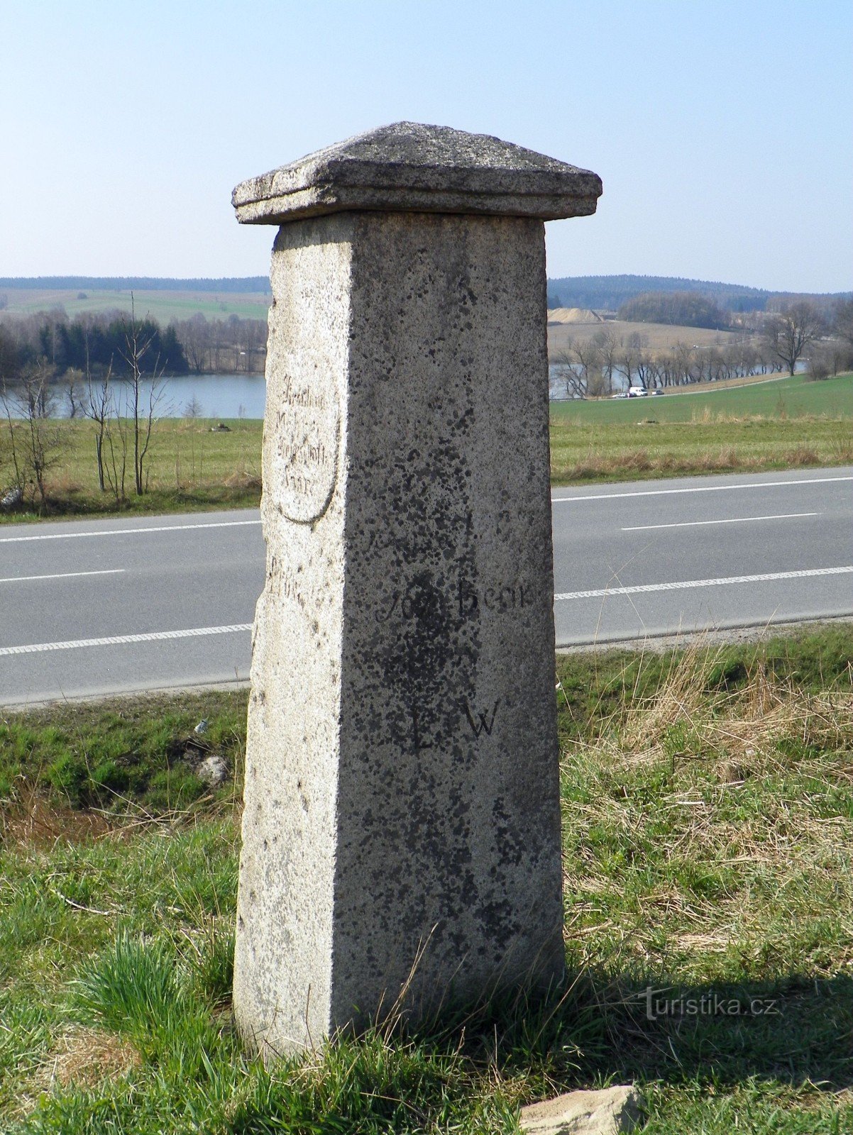 Historický hraniční kámen z roku 1867 hned vedle silnice č. 37 ze Žďáru nad Sázavou ke Stržanovu. Je to kulturní památka, která stojí na bývalé historické hranici Země české a Země Moravské platné do r. 1949. Je to skutečný historický hraniční kámen, 300 m západně u Pilské nádrže je nový – symbolický hraniční kámen se sochami od Michala Olšiaka, ten ale nestojí přesně na historické hranici, viz…