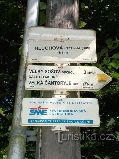 Rozcestí Hluchová je výchozím místem žluté turistické trasy, po které vystoupáme na Velký Sošov ( 885 m.n.m.) a odtud dále můžeme pokračovat po modré a to severním směrem Na Velkou Čantoryji ( 995 m.n.m.) či jižním směrem do sedla Gruníček. Rozcestí najdeme v údolí říčky Hluchová jihovýchodním směrem z obce Nýdek. Rozcestník je uprostřed silnice spojující osadu Kolibiska s obcí Nýdek. V…