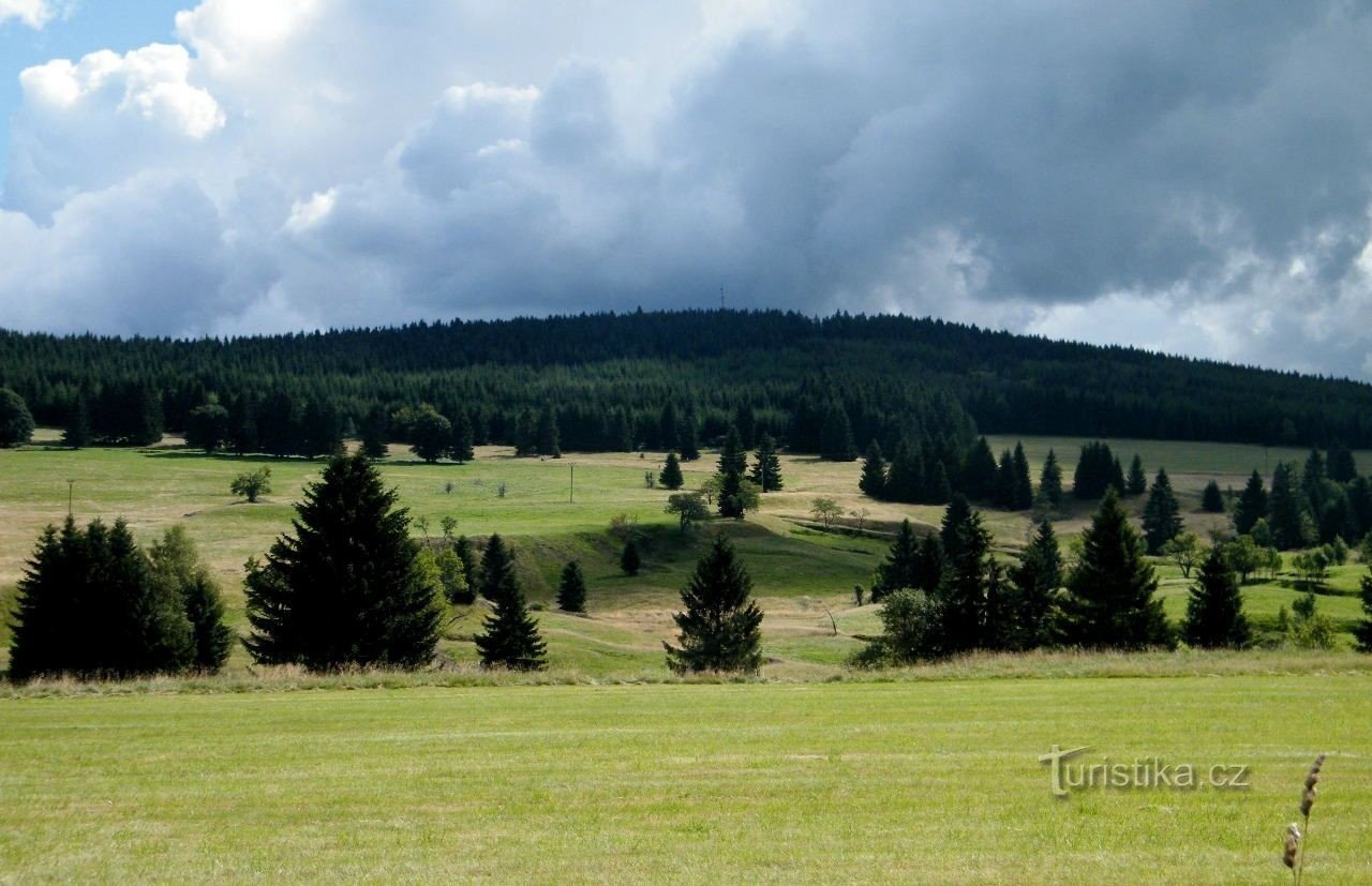 Dokonce jsme i pohrdli značenou cestou a vydali se ke kapličce severně od náměstí. Ani potom jsme značku nehledali a vyšli jsme luční cestou…
