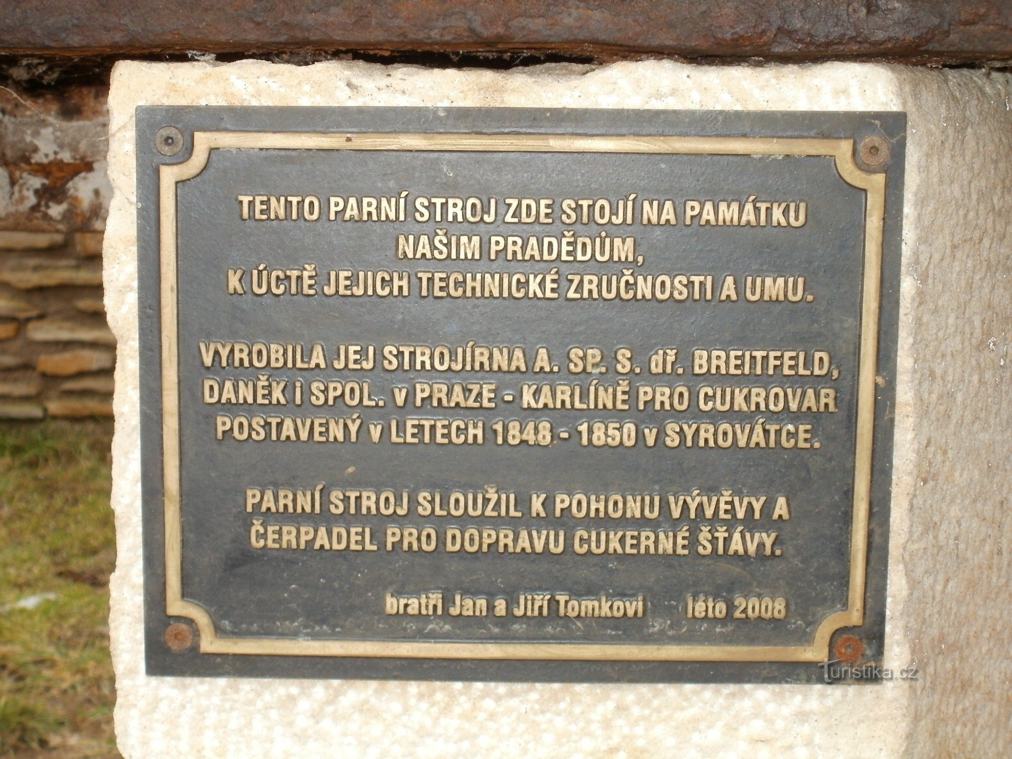 A ještě jedna Krásná citace: TENTO PARNÍ STROJ ZDE STOJÍ NA PAMÁTKU NAŠIM PRADĚDŮM K ÚCTĚ JEJICH…