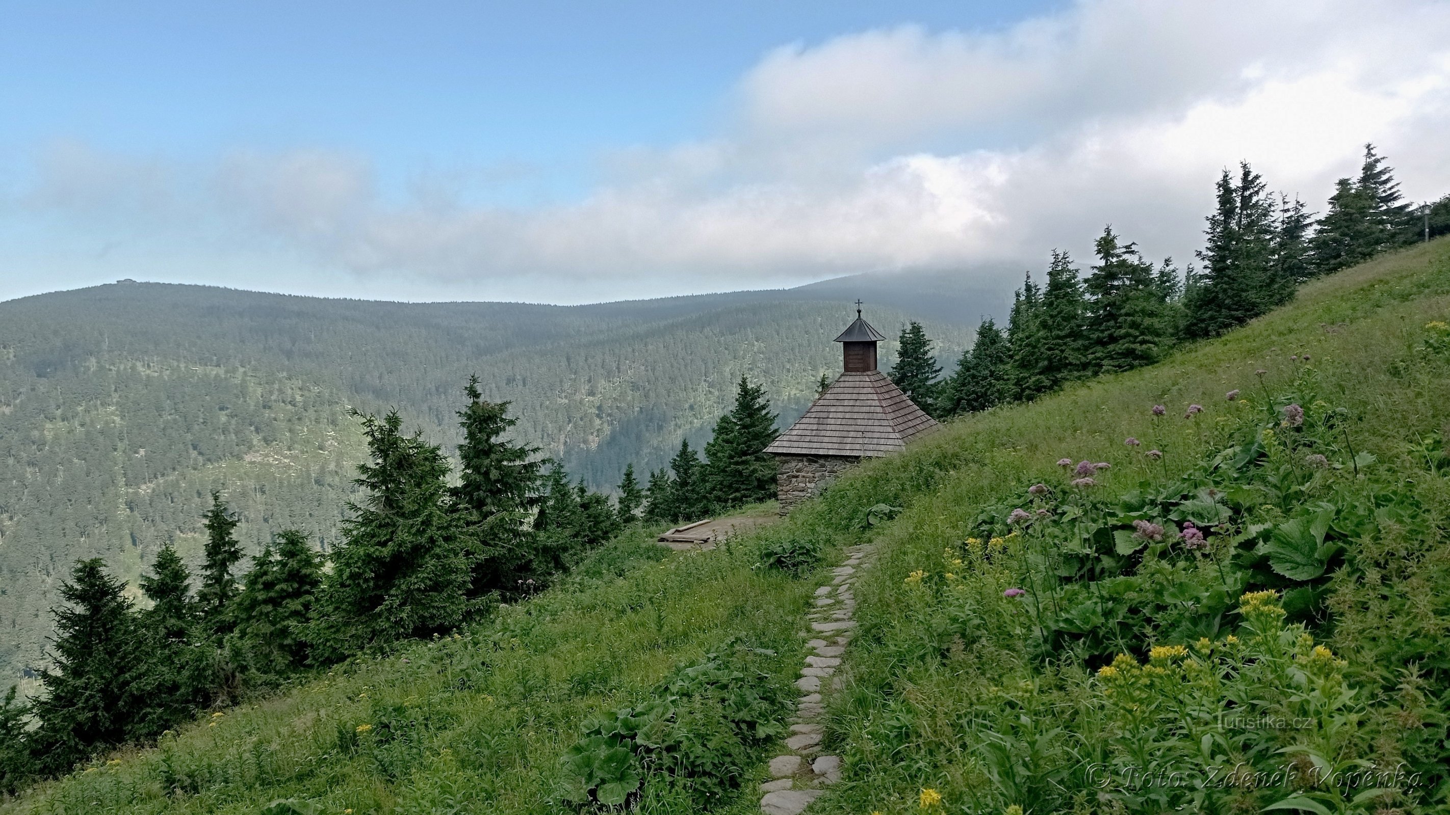 Mezi nejhezčí túry v Jeseníkách určitě patří hřebenovka z Červenohorského sedla na Šerák. Začínám u kaple Obětem hor a stoupnám na Červenou horu. Pod jejím vrcholem je známá Vřesová studánka s údajně zázračnou vodou. Každopadně se zde osvěžím a kochám krásnými výhledy. Okolo kříže nad Vřesovou studánkou dělám malou odbočku ke Kamennému oknu, odkud je pro změnu krásný výhled na druhou stranu…