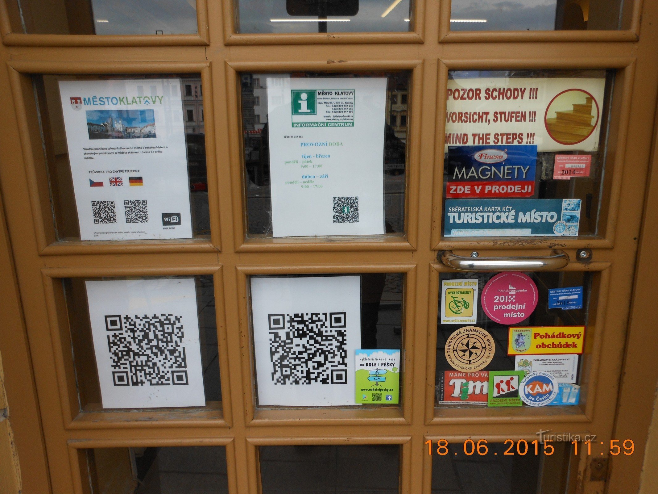 dají se zde zakoupit turistické známky:č. 404 (Klatovy)č. 1277 (Katakomby) č. 1796 (Barokní lékárna)