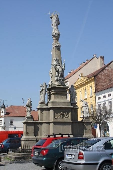 Nachází se uprostřed hlavního Palackého náměstí. Tento dominantní barokní mariánský sloup byl postaven mistrem Štěpánem Paganem v letech 1721-26. Sochy představují Pannu Marii, Sv. Jana Nepomuckého, sv. Floriána, sv. Hátu a sv. Karla Boromejského.