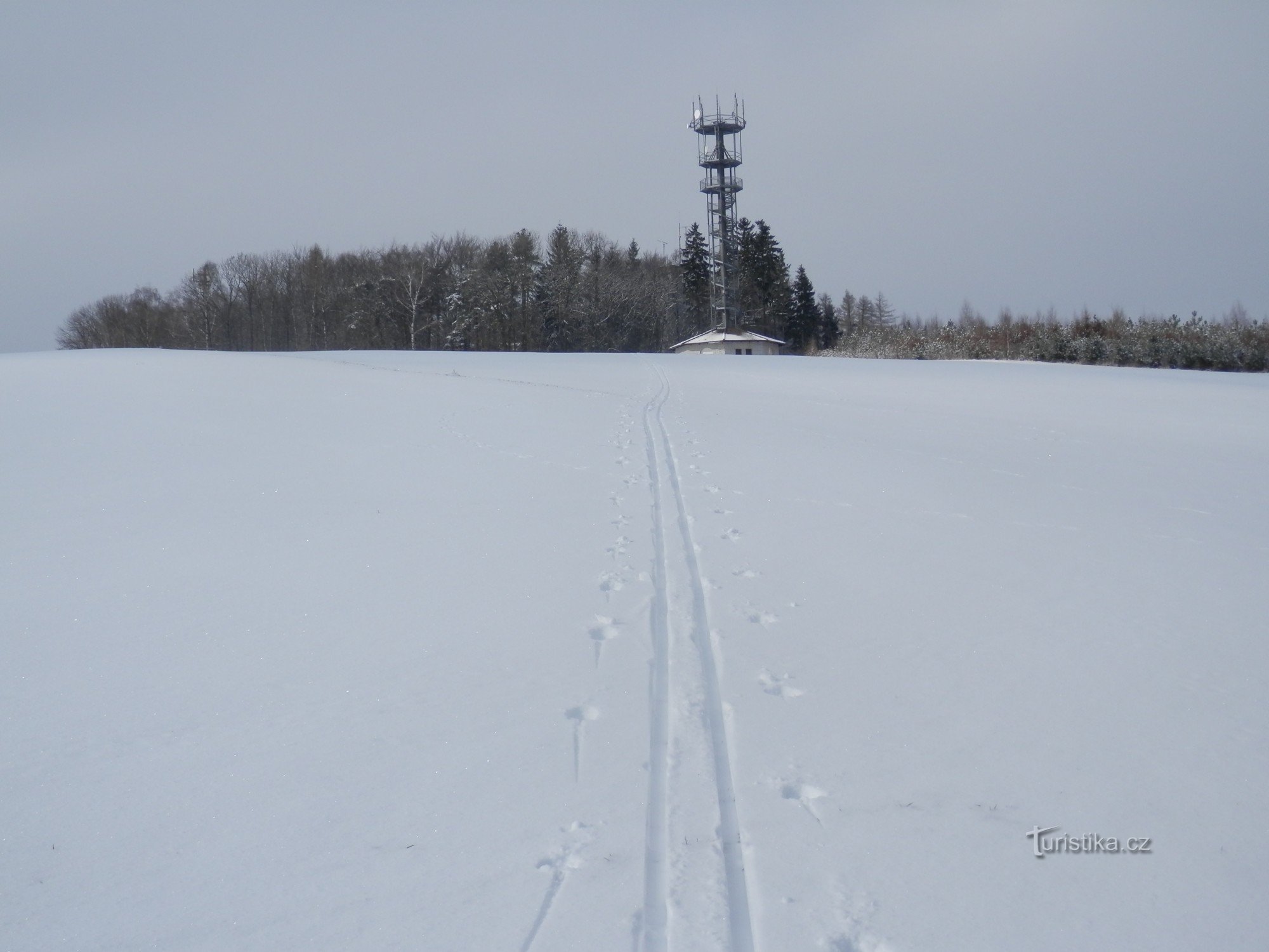 U kostelíčka necháme auto a pokračujeme pěšky po hlavní silnici. Asi po 150 m odbočíme mezi domy do leva. Polní cestou pokračujeme mírným stoupáním k vrcholu. Čeká nás veliké překvapení. Snoubí se tu…