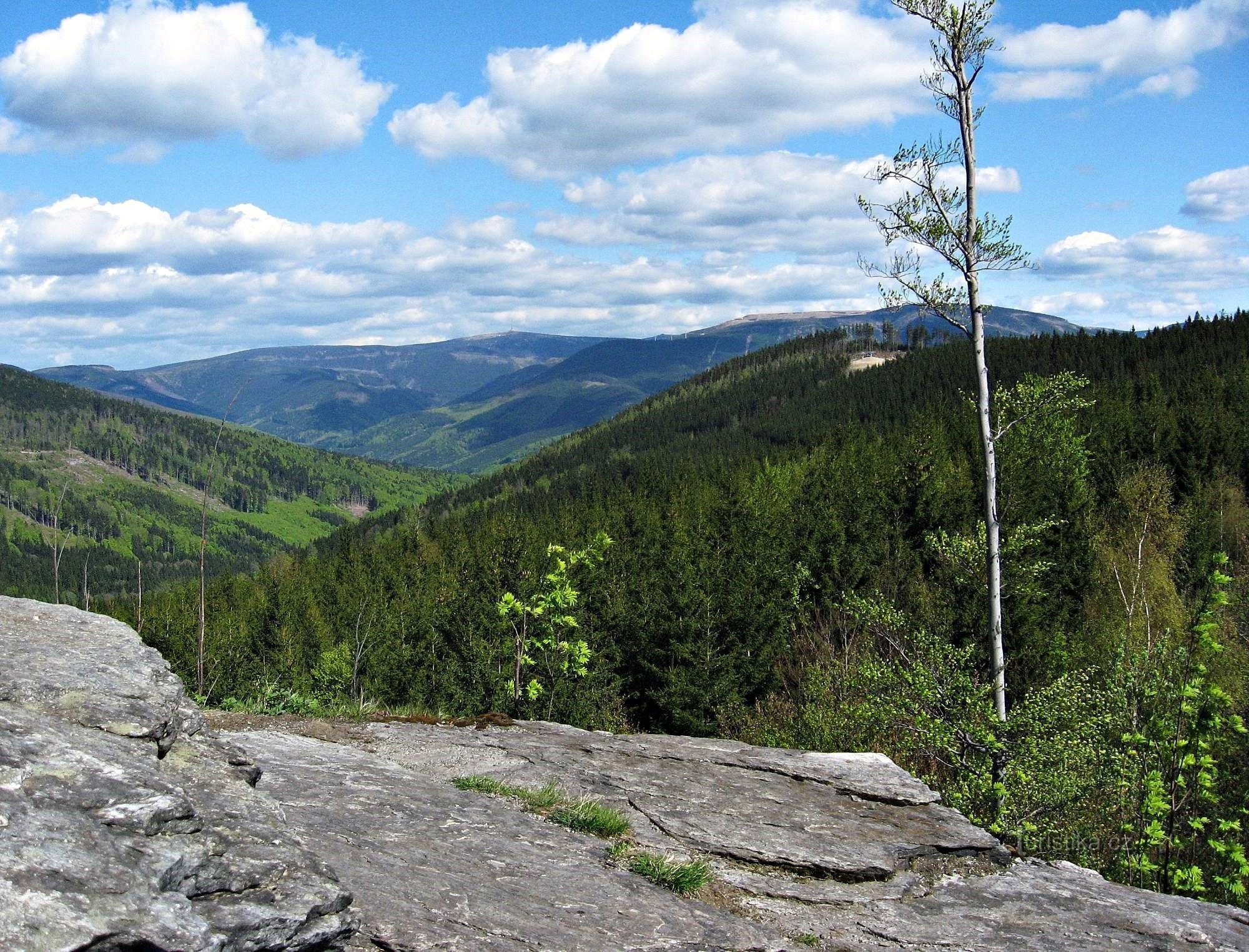 Dnes spolu navštívíme skalní vyhlídku, která nejenže je dobře dostupná, patří k nejkrásnějším v oblasti, ale navíc je výhled z ní svým způsobem i unikátní. Místo se nazývá Tři kameny podle téměř třicet metrů vysoké stěny rulového mrazového srubu, vypínajícího se vysoko nad Přemyslovským sedlem a rozčepýřeného na temeni skalními výchozy v podobě několika obřích kovadlin či skalních hřibů.…