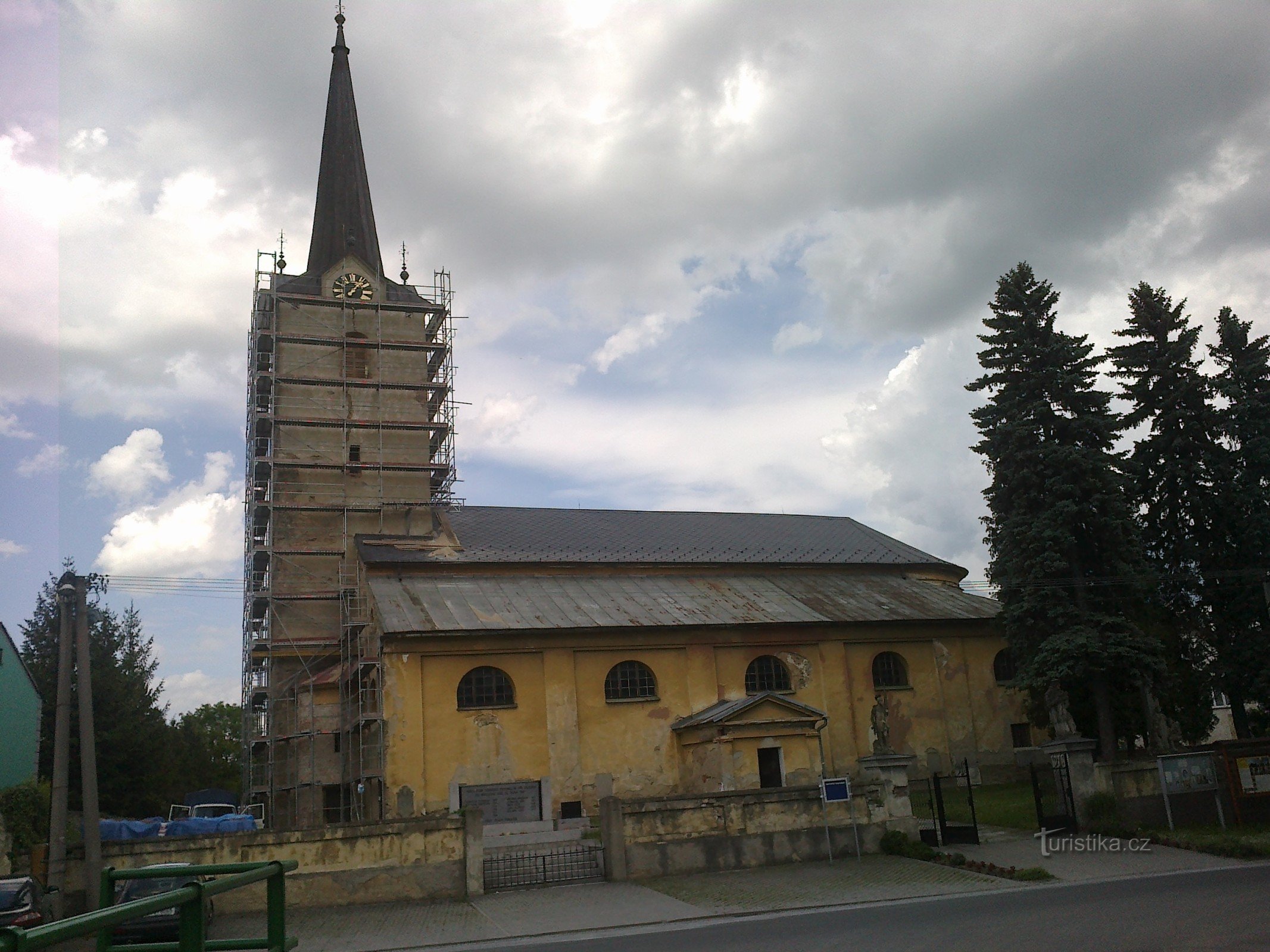 Jindřichovský kostel sv. Mikuláše najdeme uprostřed obce. Jeho věž je však vidět zdaleka ze všech možných úhlů a míst.
