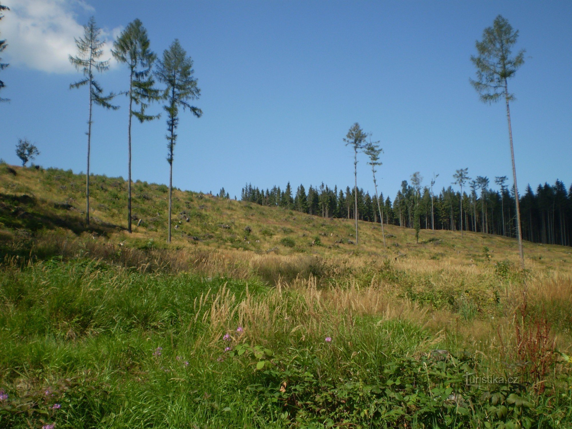 Jindřichova vyhlídka, jak je toto místo nazvané v mapách současných vlastně ani vyhlídkou není. Je to jeden z kopců Zlatohorské vrchoviny, kóta 797 by se dalo říct. Najít tento vrchol vůbec není snadné.