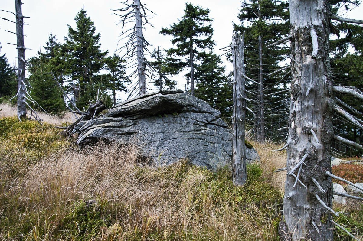 Kdo zamířil kouteckou lanovkou pod Medvědí horu, nemohl si nevšimnout drobné skály, čnící nad vrcholky stromů nedaleko horní stanice lanovky. Samozřejmě mě nějakou dobu lákalo místo navštívit, již podle pohledu do mapy je patrné, že přístup k místu nebude snad příliš obtížný. Když se tedy naskytla příležitost, provedl jsem patřičný průzkum.
