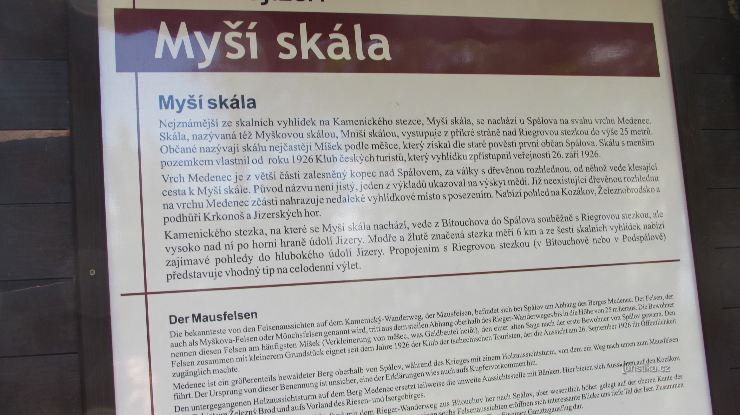 Kamenického stezka začíná na železniční zastávce Spálov. Pokračuje po silnici po modré značce do obce Spálov. Značka prudce stoupá do kopce do obce Spálov kam dorazí asi po 1 km. Značka prochází vesnicí kolem památné lípy, pak lesem stoupá až se dostane k Myší skále-vyhlídka. Po vrstevnici pokračuje modrá k přístřešku na rozcestí Morava. Tady se pokračuje po žluté značce a pohybuje se po…