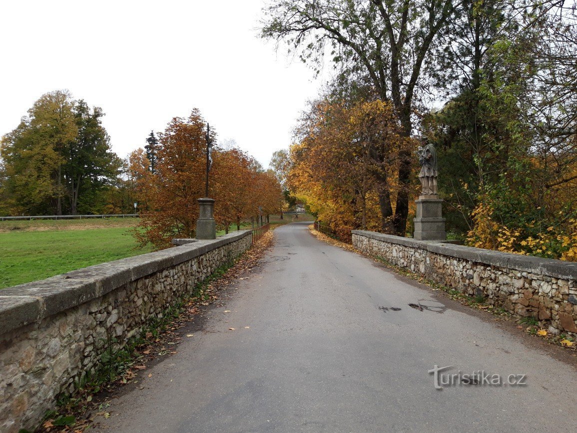 Na okraji Milevska, v blízkosti klášterního areálu a hřbitova teče Milevský potok. A přes něj postavili v polovině 19. století dvou obloukový kamenný most. Tento starobylý krasavec je zdobený nad svým středním pilířem litinovým křížem a plastikou, sochou sv. Jana Nepomuckého. Skulptura tohoto světce je datována asi do roku 1778 a dříve stávala patrně před branou do kláštera.